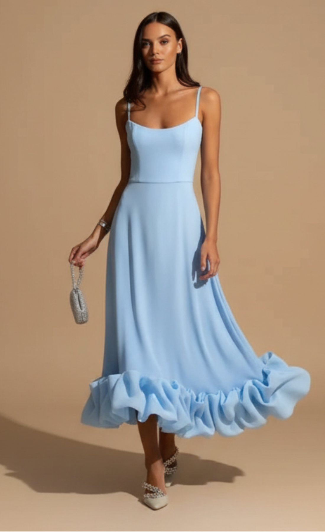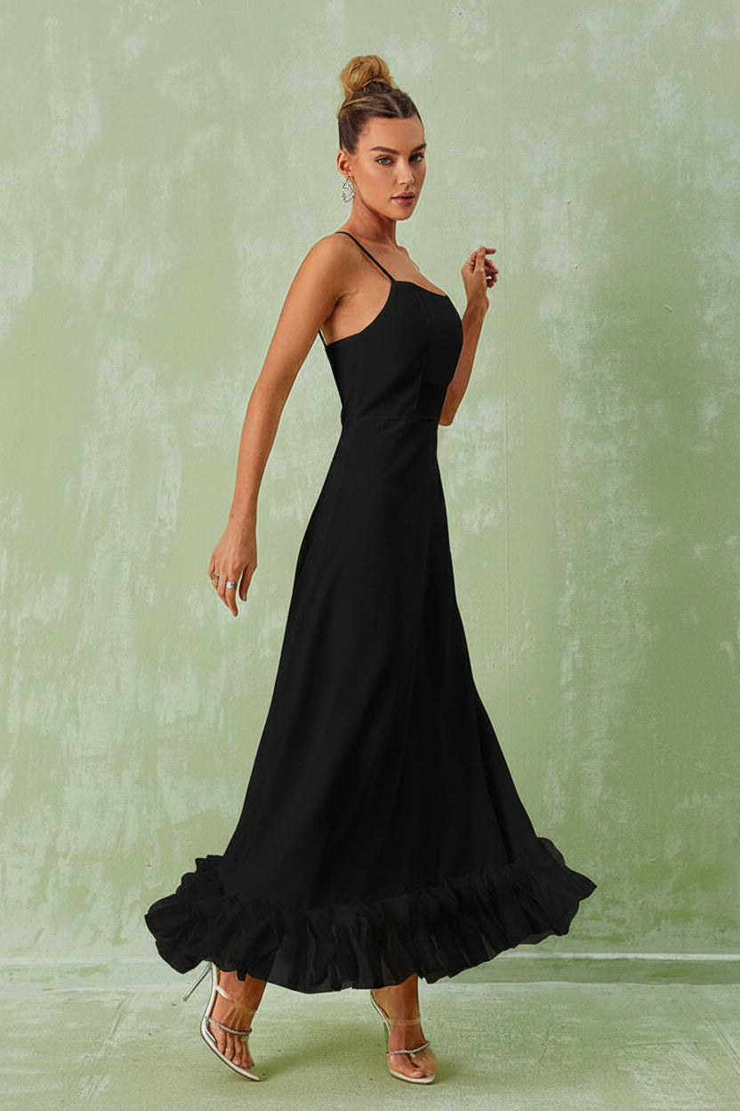Confeccionado en un tejido suave y de alta calidad, este vestido midi es perfecto para ocasiones especiales, cenas, eventos formales o simplemente para un día que merece un look especial. El escote y el acabado impecable aportan un aire de elegancia atemporal que combina con accesorios delicados o complementos más audaces según tu estilo.