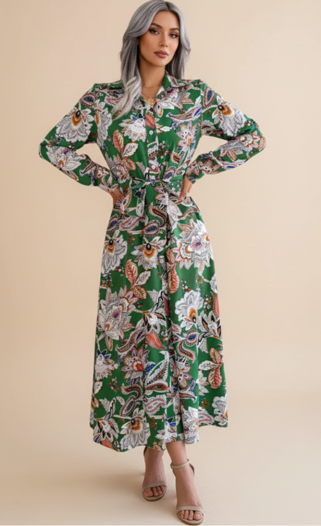 El vestido Valencia combina elegancia clásica y comodidad contemporánea en un diseño atemporal. Su corte camisero, acompañado de un delicado estampado floral, aporta un estilo sofisticado y relajado a la vez.