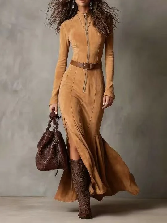 Su corte favorecedor y el movimiento natural del tejido hacen de este vestido una opción versátil y cómoda, ideal para llevarlo durante todo el día con botas o sandalias según la temporada. El acabado equilibrado y los detalles distintivos, que recuerdan la inspiración del lejano oeste adaptada a la moda contemporánea, aportan un aire auténtico sin perder sofisticación.