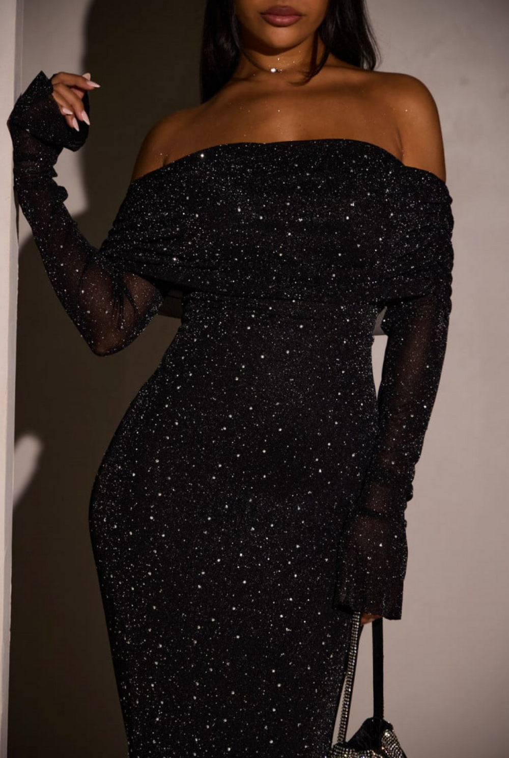 • Mangas largas y largo hasta la rodilla, ideal para eventos formales y cenas elegantes.